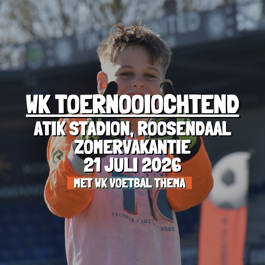 | WK Toernooiochtend | Atik Stadion | 21 juli 2026 | 09.00 - 12.00 uur | 6 t/m 14 jaar |
